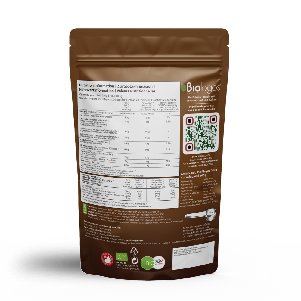 Βιολογική Πρωτεΐνη Choco Αρακά 500gr 76% Βιολόγος