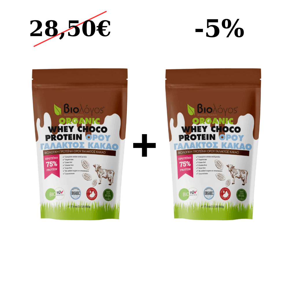 Βιολογική Πρωτεΐνη Whey Ορού Γάλακτος Κακάο 2x500gr 75% Βιολόγος (2 Τεμάχια)
