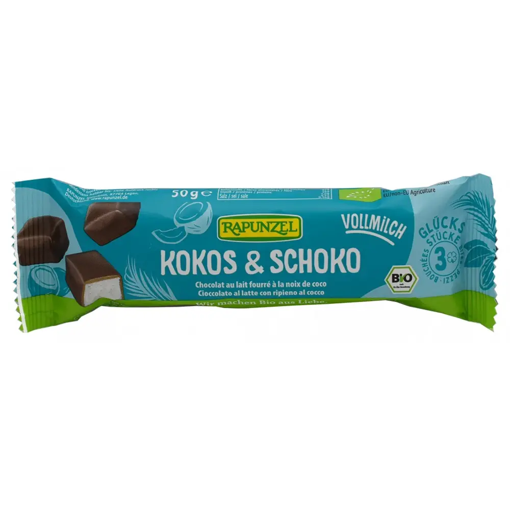 Μπάρα Καρύδας Με Σοκολάτα Γάλακτος 20x50gr Rapunzel (20 Τεμάχια)