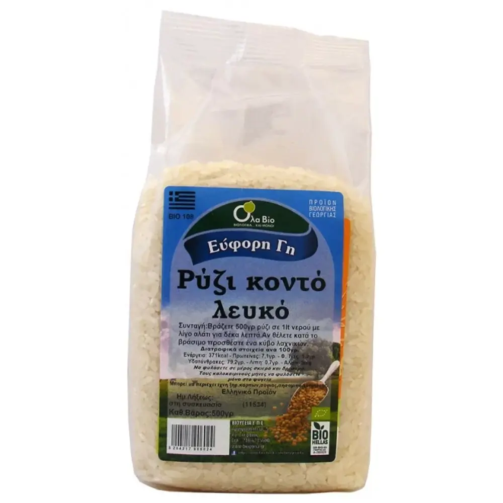 Ρύζι Κοντό Λευκό 500gr Όλα Bio