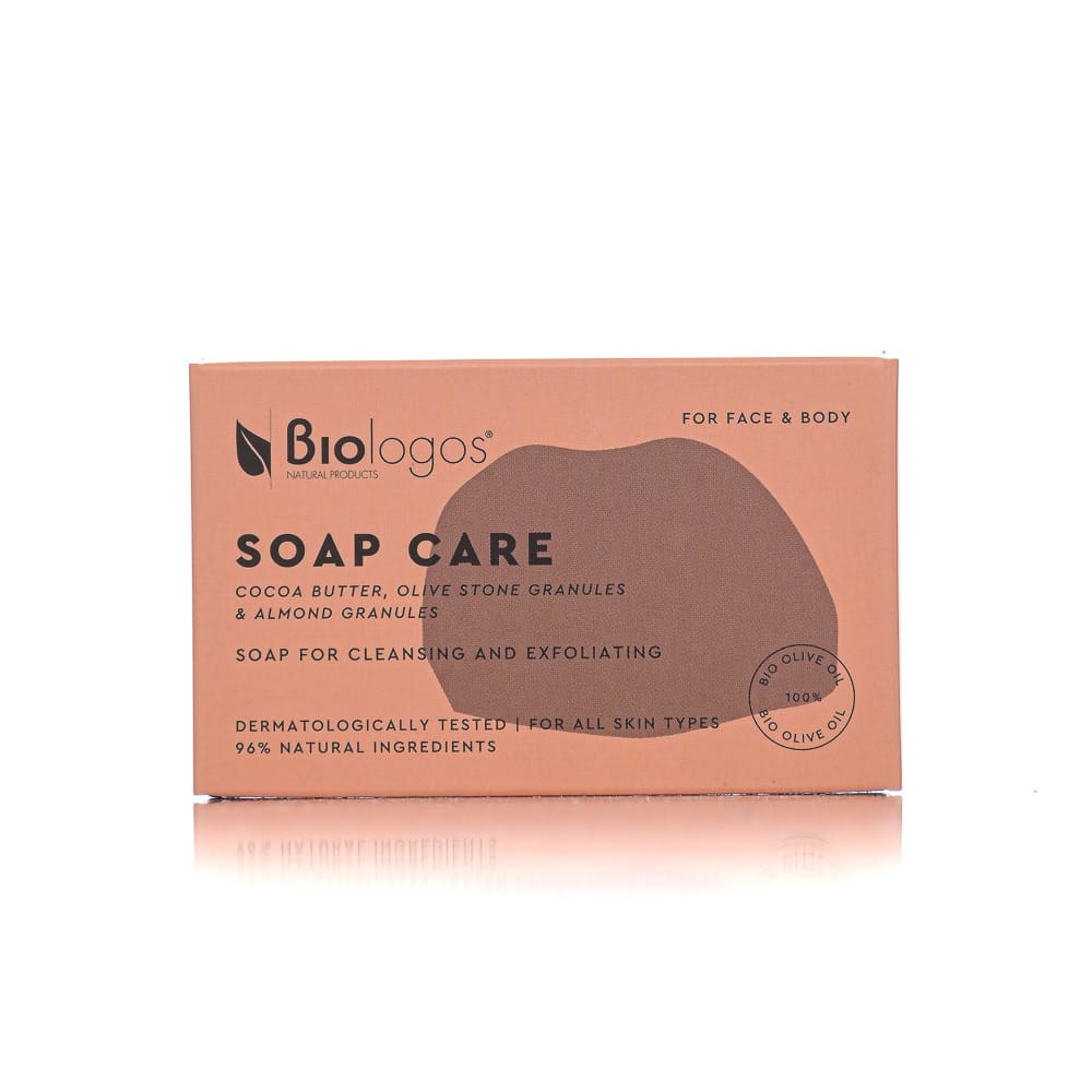 Σαπούνι Απολέπισης με Βούτυρο Κακάο, Κόκκους από Κουκούτσι Ελιάς και Αμυγδάλου: Καθαρίζει σε βάθος το πρόσωπο και το σώμα ενώ αφήνει μια αίσθηση απαλότητας και φρεσκάδας.