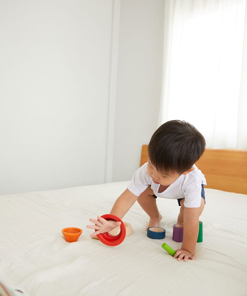 Κώνος Ταξινόμησης, Μάθετε το ύψος, το βάθος, το μέγεθος και τη σειρά ταξινομώντας και στοιβάζοντας αυτούς τους πολύχρωμους κώνους. Το σετ αποτελείται από 9 κομμάτια. Διαστάσεις: cm Ø 13.0 x 13.2 | inch Ø 5.1 x 5.2 (βάση)
