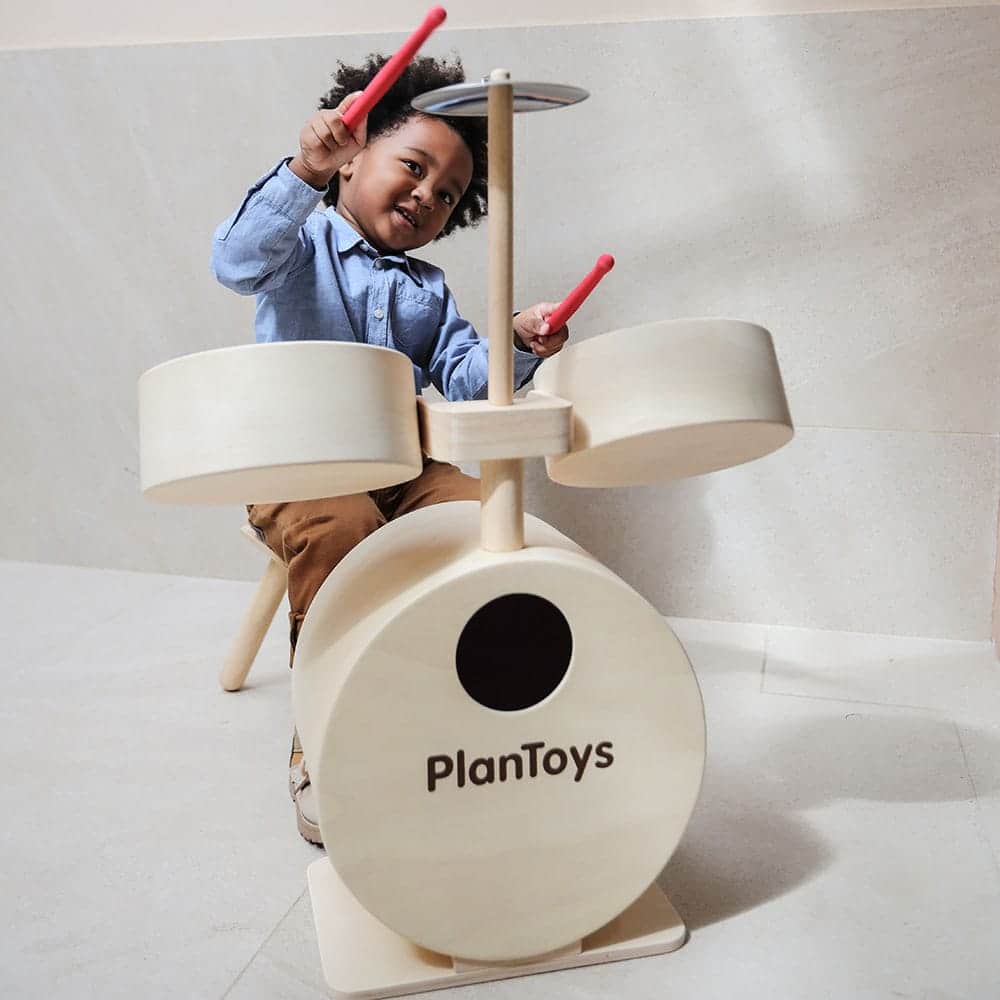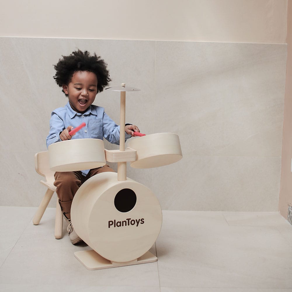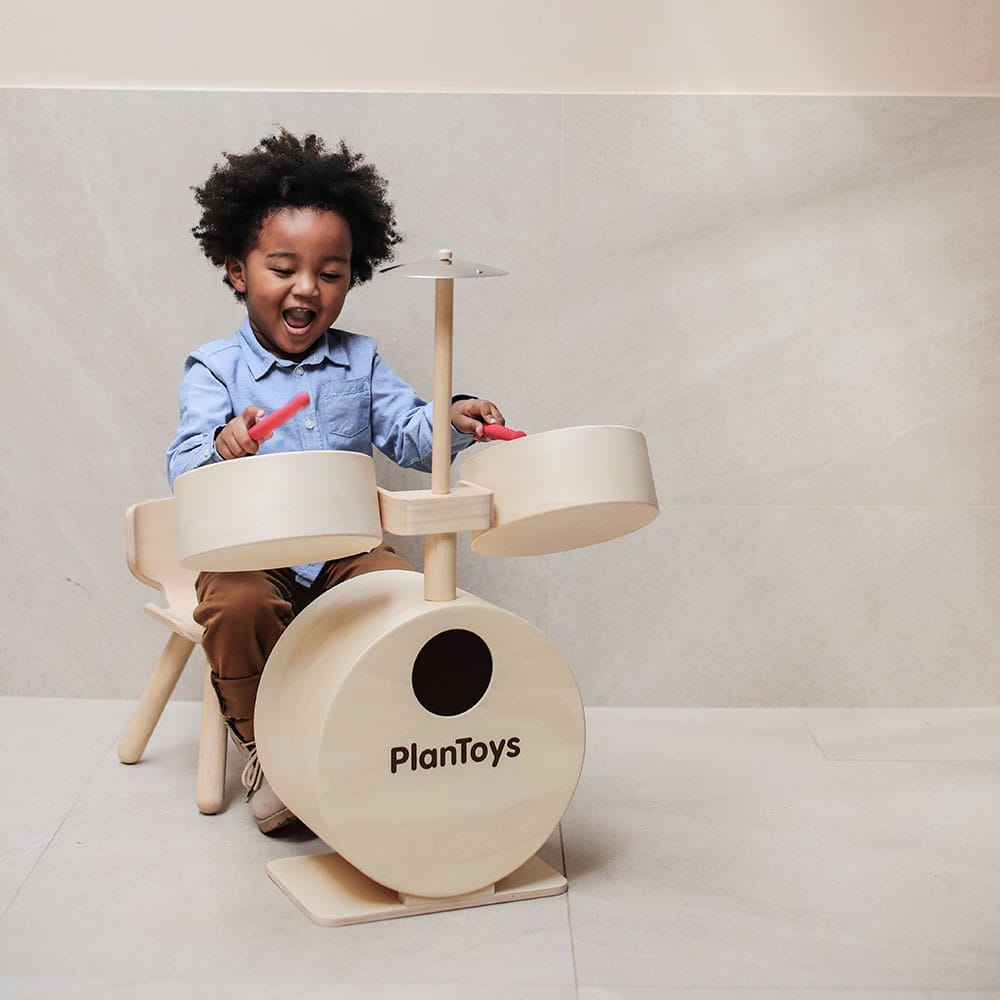 Γίνετε μέλος μίας ροκ μπάντας και μπείτε στο κέντρο της σκηνής με τα ντραμς της PlanToys! Αυτό το μουσικό παιχνίδι είναι το πρώτο στον κόσμο που είναι εξ’ ολοκλήρου κατασκευασμένο από ξύλο και έχει την ικανότητα να παράγει ποικιλία ήχων και ρυθμών. Αποτελείται από 1 ταμπούρο, 1 μπάσο τύμπανο, 1 πεντάλ, 1 πιατίνι και 2 μπαγκέτες από καουτσούκ. Τα παιδιά μπορούν να ενισχύσουν το συντονισμό ματιού-χεριού, τις κινητικές τους δεξιότητες, την ικανότητα συγκέντρωσης, την ακουστική οξύτητα.Διαστάσεις: 51.5 x 53.9 x 69.5 cm | 20.3 x 21.2 x 27.4 inch