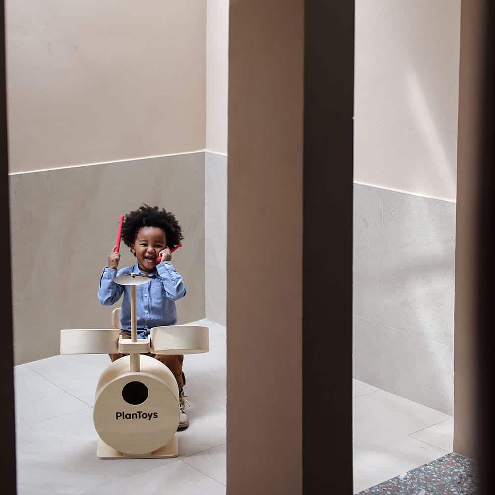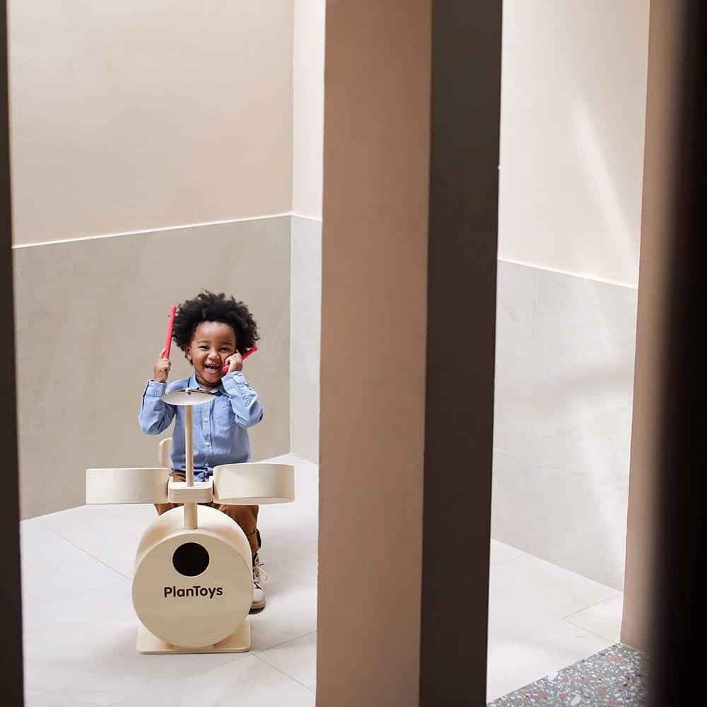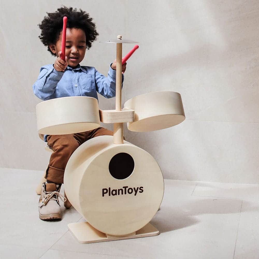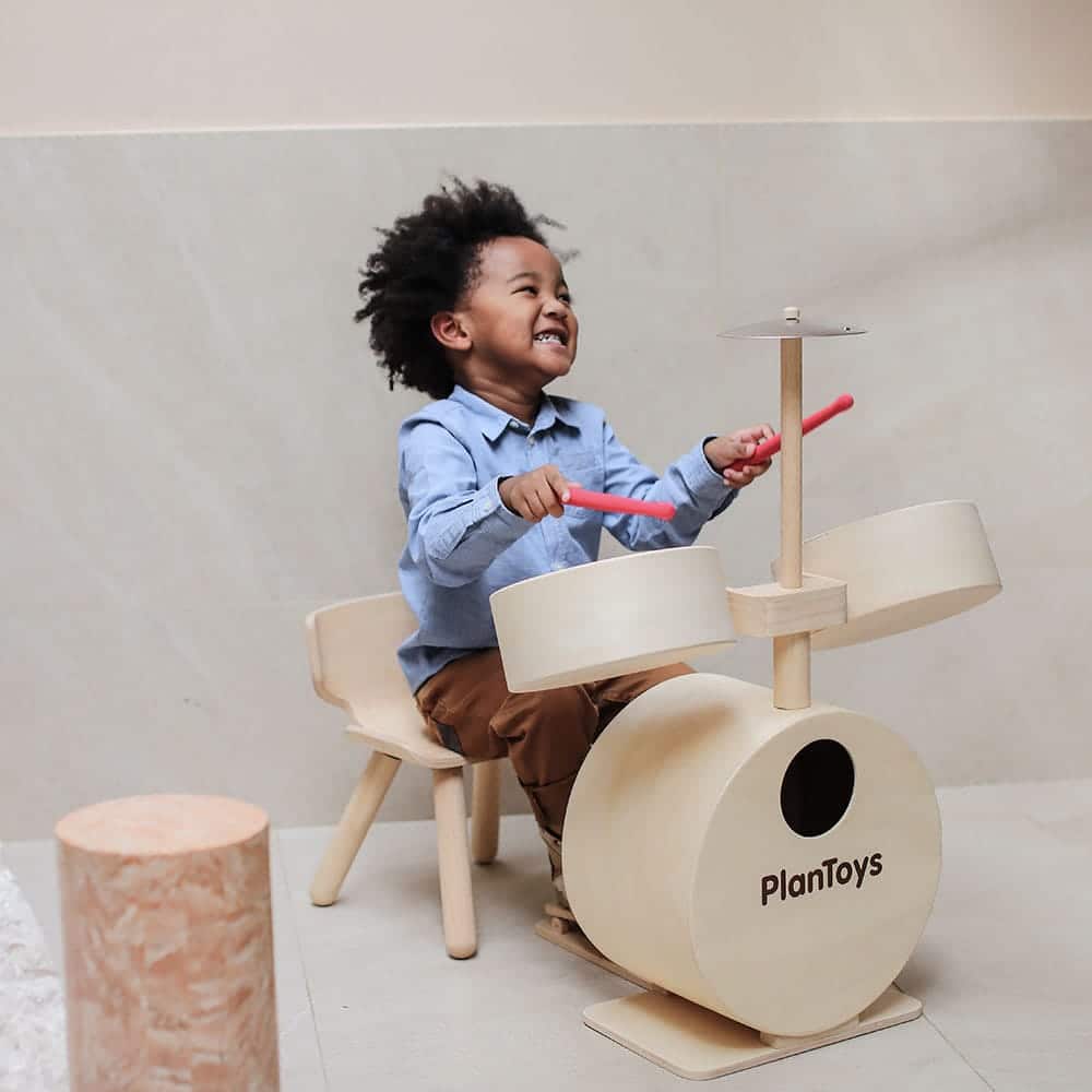 Γίνετε μέλος μίας ροκ μπάντας και μπείτε στο κέντρο της σκηνής με τα ντραμς της PlanToys! Αυτό το μουσικό παιχνίδι είναι το πρώτο στον κόσμο που είναι εξ’ ολοκλήρου κατασκευασμένο από ξύλο και έχει την ικανότητα να παράγει ποικιλία ήχων και ρυθμών. Αποτελείται από 1 ταμπούρο, 1 μπάσο τύμπανο, 1 πεντάλ, 1 πιατίνι και 2 μπαγκέτες από καουτσούκ. Τα παιδιά μπορούν να ενισχύσουν το συντονισμό ματιού-χεριού, τις κινητικές τους δεξιότητες, την ικανότητα συγκέντρωσης, την ακουστική οξύτητα.Διαστάσεις: 51.5 x 53.9 x 69.5 cm | 20.3 x 21.2 x 27.4 inch