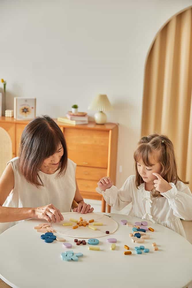 Ξεκινήστε ταξινομώντας τα κομμάτια Μαντάλα από το κέντρο και επεκτείνοντας σταδιακά τη διάμετρο. Οι παίκτες μπορούν να επιλέξουν να δημιουργήσουν μοτίβα ανεξάρτητα ή να ακολουθήσουν το φύλλο οδηγιών. Αυτή η δραστηριότητα μπορεί να βοηθήσει στη βελτίωση της δημιουργικότητας, της συγκέντρωσης, της λήψης αποφάσεων, της οπτικής αντίληψης και του συντονισμού ματιού-χεριού ενώ παράλληλα σας χαλαρώνει. Το σετ περιλαμβάνει 60 ξύλινα κομμάτια σε διάφορα σχήματα και μεγέθη, ένα κυκλικό κομμάτι ύφασμα και μια τσάντα για αποθήκευση. Περιλαμβάνονται οδηγίες παιχνιδιού. Διαστάσεις: cm Ø 30.0 x 30.0 x 0.8 (πανάκι) | inch Ø 11.8 x 1.8 x 0.3