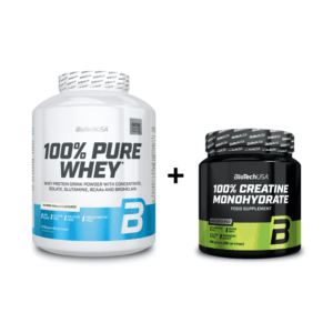 Το 100% Pure Whey & 100% Micronized Creatine Set (Chocolate 2.27kg + Unflavored 300g) της Biotech USA αποτελεί έναν ιδανικό συνδυασμό για ενίσχυση της μυϊκής δύναμης, της ανάπτυξης και της αποκατάστασης μετά την άσκηση. Η 100% Pure Whey Chocolate είναι ένα υψηλής ποιότητας συμπλήρωμα πρωτεΐνης ορού γάλακτος που περιέχει συμπύκνωμα (WPC) και απομονωμένη (WPI) μορφή, προσφέροντας πλήρες προφίλ αμινοξέων, πλούσιο σε BCAA και γλουταμίνη. Με εξαιρετική διαλυτότητα και απολαυστική γεύση σοκολάτας, συμβάλλει στην ανάπτυξη και διατήρηση της μυϊκής μάζας, καθώς και στη γρήγορη αποκατάσταση μετά την προπόνηση. Είναι χωρίς γλουτένη και χωρίς προσθήκη ζάχαρης, αποτελώντας μια καθαρή και εύπεπτη πηγή πρωτεΐνης για κάθε αθλητή ή δραστήριο άτομο. Η 100% Micronized Creatine Monohydrate προσφέρει καθαρή μονοϋδρική κρεατίνη σε μικρονισμένη μορφή για άριστη απορρόφηση και εύκολη ανάμιξη χωρίς σβόλους. Ενισχύει τη δύναμη, την εκρηκτικότητα και την αντοχή σε έντονα προγράμματα προπόνησης, ενώ συμβάλλει στην ταχύτερη αποκατάσταση και στη βελτίωση της συνολικής απόδοσης. Το σετ συνδυάζει ιδανικά την πρωτεϊνική υποστήριξη της Whey με την ενεργειακή ενίσχυση της Κρεατίνης, προσφέροντας μια ολοκληρωμένη, ποιοτική και αποτελεσματική λύση για τη μέγιστη απόδοση, τη μυϊκή ανάπτυξη και την υποστήριξη της προπόνησης σε κάθε επίπεδο.
