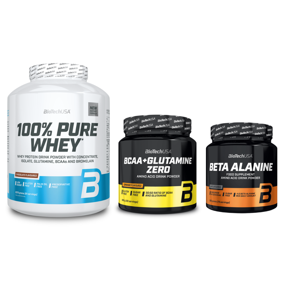 Biotech USA Set (100% Pure Whey Chocolate 2.27kg & BCAA & Glutamine Zero Πορτοκάλι 480gr & Beta Alanine Unflavoured 300gr)