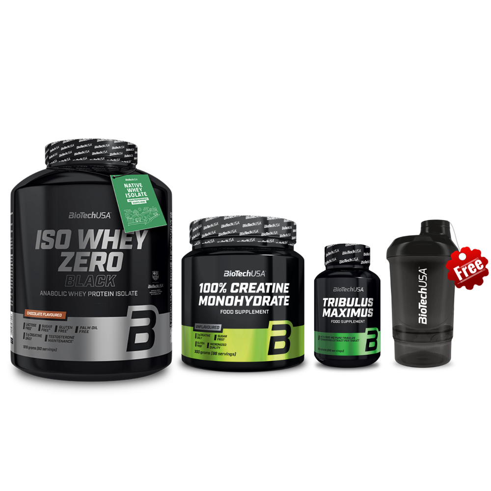 Biotech USA Set (Iso Whey Zero Black Chocolate 1.816gr & Micronized Creatine 300g & Tribulus Maximus 90 Ταμπλέτες & Δώρο Shaker Wave Black 600ml)
