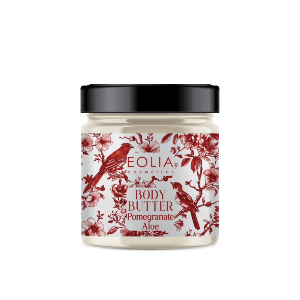 Body Butter με μεταξένια υφή και άρωμα Ρόδι & Αλόη. H Eolia natural cosmetics επιλέγοντας τους πιο εκλεκτούς καρπούς και βότανα της Λακωνικής Γης σας χαρίζει όλα τα θρεπτικά συστατικά, που χρειάζεται το δέρμα σας, μέσα από μια σειρά από βούτυρα σώματος με βάση το Ελαιόλαδο σε συνδυασμό με το Βαλσαμέλαιο.