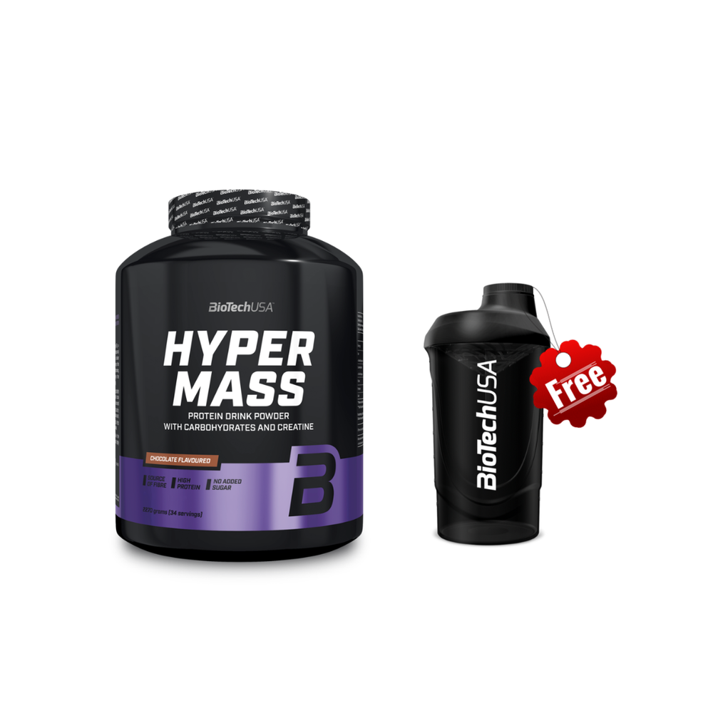 Το Hyper Mass Σοκολάτα της Biotech USA, είναι ένα προηγμένο συμπλήρωμα αύξησης βάρους (mass gainer), σχεδιασμένο για όσους δυσκολεύονται να αυξήσουν τη μυϊκή τους μάζα μέσω της καθημερινής διατροφής. Περιέχει ιδανικό λόγο πρωτεϊνών-υδατανθράκων 1:3, προσφέροντας ποιοτικά μακροθρεπτικά συστατικά που υποστηρίζουν την αποκατάσταση, τη μυϊκή ανάπτυξη και την αύξηση βάρους με ελεγχόμενο τρόπο. Η πρωτεΐνη ορού γάλακτος υψηλής ποιότητας συνδυάζεται με σύνθετους και απλούς υδατάνθρακες για άμεση αλλά και παρατεταμένη ενεργειακή υποστήριξη. Επιπλέον, είναι ενισχυμένο με κρεατίνη, η οποία συμβάλλει στην αύξηση της δύναμης και της απόδοσης κατά την προπόνηση. Η πλούσια γεύση σοκολάτας προσφέρει ευχάριστη κατανάλωση, χωρίς βαριά υφή ή δυσάρεστη επίγευση. Ιδανικό για αρχάριους και προχωρημένους αθλητές που επιδιώκουν αύξηση όγκου, καθώς και για όσους έχουν υψηλές θερμιδικές ανάγκες λόγω έντονης σωματικής δραστηριότητας. Μαζί δώρο ένα Shaker Wave Black 600ml της Biotech USA.