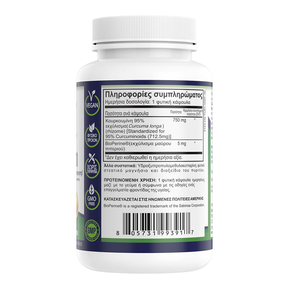 Curcumin 750mg 30 Φυτικές Κάψουλες της Natural Vitamins – Ισχυρό φυσικό συμπλήρωμα με 750mg κουρκουμίνης και Bioperine για έως 40x αυξημένη απορρόφηση, προσφέροντας αντιφλεγμονώδη και αντιοξειδωτική προστασία, υποστήριξη αρθρώσεων, πεπτικού συστήματος και καθημερινής ευεξίας.