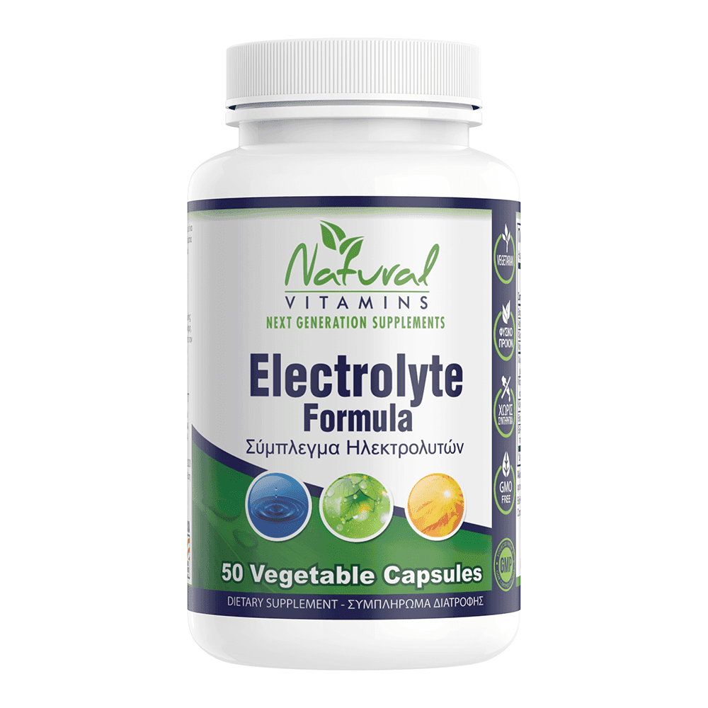Το Electrolyte Formula, της Natural Vitamins είναι ένα προηγμένο συμπλήρωμα διατροφής σχεδιασμένο για την αναπλήρωση των ηλεκτρολυτών και τη σωστή ενυδάτωση του οργανισμού, ειδικά κατά τη διάρκεια ή μετά από έντονη σωματική δραστηριότητα. Περιέχει έναν ισορροπημένο συνδυασμό από νάτριο, κάλιο, μαγνήσιο, ασβέστιο και χλωρίδιο, τα οποία συμβάλλουν στη διατήρηση της φυσιολογικής λειτουργίας των μυών και του νευρικού συστήματος, καθώς και στην πρόληψη της κόπωσης και των μυϊκών κραμπών. Η φόρμουλα του Electrolyte Formula υποστηρίζει τη ρύθμιση της ισορροπίας υγρών και ηλεκτρολυτών στον οργανισμό, βοηθώντας στη διατήρηση της ενέργειας και της αντοχής, ακόμη και σε συνθήκες υψηλής θερμοκρασίας ή έντονης εφίδρωσης. Ιδανικό για αθλητές, άτομα που ασκούνται συχνά, καθώς και για όσους χρειάζονται επιπλέον ενυδάτωση και αναπλήρωση μεταλλικών στοιχείων. Οι 50 φυτικές κάψουλες προσφέρουν πρακτική και εύκολη λήψη χωρίς ζάχαρη, γλουτένη ή τεχνητά πρόσθετα. Το Electrolyte Formula είναι η ιδανική επιλογή για καθημερινή υποστήριξη της υδάτωσης, της αντοχής και της μυϊκής απόδοσης, εξασφαλίζοντας ισορροπία και ευεξία σε κάθε προπόνηση ή απαιτητική ημέρα.