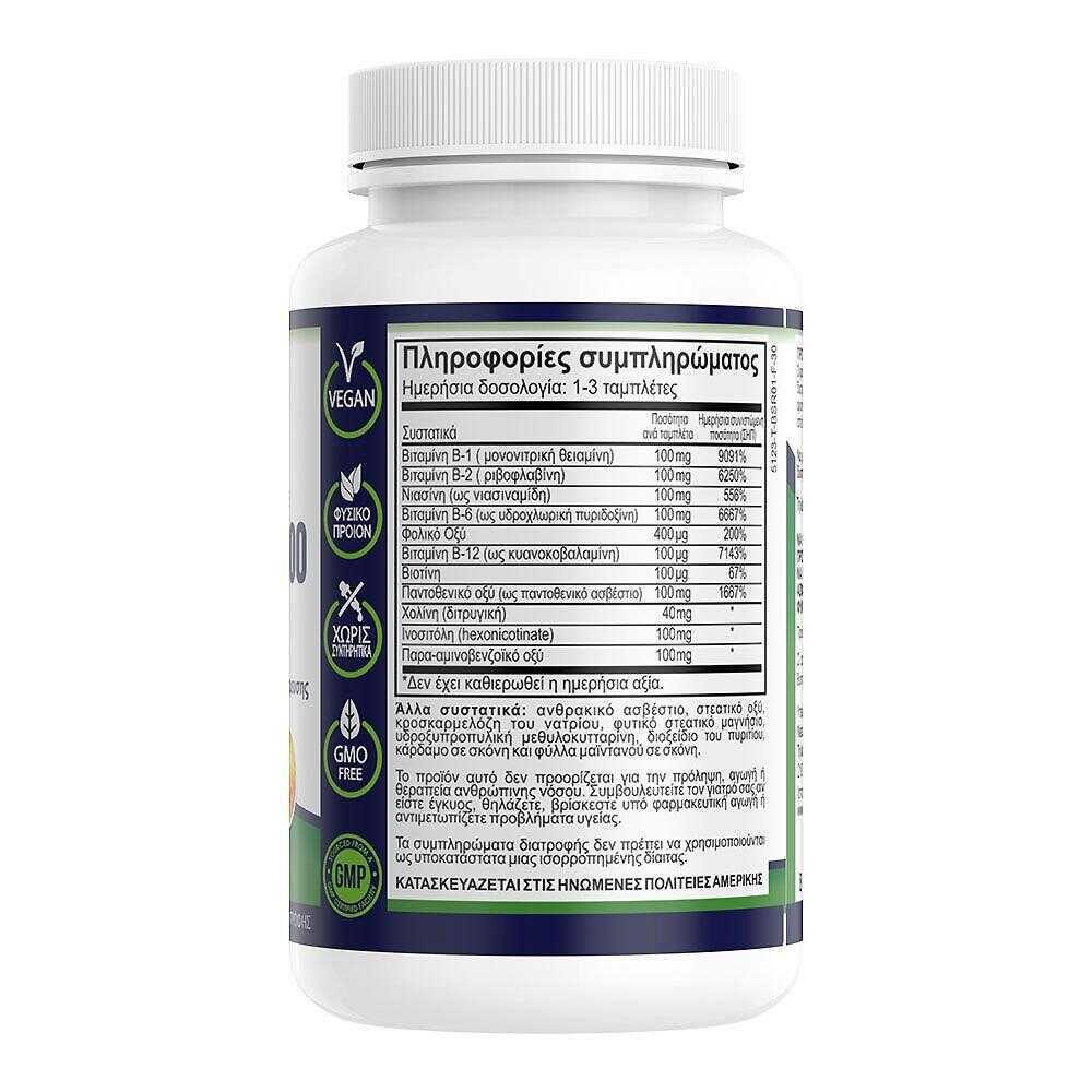 Natural Vitamins Vitamin B Complex Βιταμίνη για Ενέργεια, Ενίσχυση του Ανοσοποιητικού & το Νευρικό Σύστημα 100mg 50 Ταμπλέτες