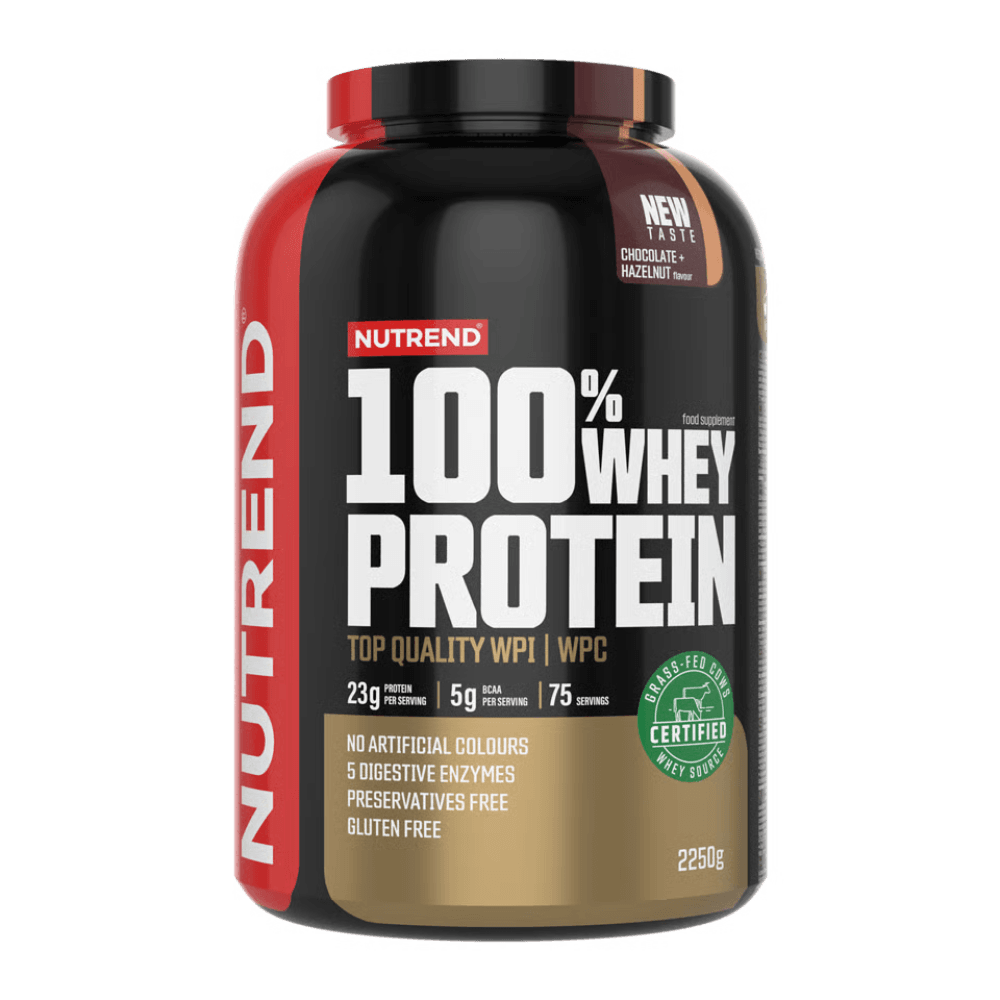 Η 100% Whey Chocolate Hazelnut 2.25kg της Nutrend, συνδυάζει υψηλή θρεπτική αξία με απολαυστική σοκολατο-φουντουκένια γεύση, προσφέροντας μια premium εμπειρία πρωτεΐνης. Η νέα, βελτιωμένη συνταγή διαθέτει αυξημένη αναλογία απομονωμένου ορού γάλακτος (WPI) για ακόμη ταχύτερη απορρόφηση και καλύτερη αξιοποίηση των αμινοξέων από τον οργανισμό. Κατασκευασμένη αποκλειστικά από πρώτες ύλες προερχόμενες από οικολογική κτηνοτροφία, φέρει επίσημη πιστοποίηση Grass Fed, εξασφαλίζοντας καθαρότερη, φυσικότερη πρωτεΐνη, απαλλαγμένη από ανεπιθύμητα κατάλοιπα. Η υφή της είναι εξαιρετικά κρεμώδης και αναμειγνύεται άψογα, χωρίς σβόλους, ενώ η γεύση Chocolate Hazelnut προσφέρει μια πλούσια, σοκολατένια εμπειρία που θυμίζει επιδόρπιο – χωρίς τύψεις. Είναι χωρίς γλουτένη, κατάλληλη για όσους επιλέγουν καθαρή διατροφή, αλλά και για αθλητές που θέλουν μια αξιόπιστη πηγή πρωτεΐνης για μυϊκή ανάπτυξη, αποκατάσταση και καθημερινή θρεπτική υποστήριξη. Ιδανική μετά την προπόνηση, σε προγράμματα γράμμωσης ή αύξησης μυϊκής μάζας, αλλά και ως γρήγορο, απολαυστικό πρωτεϊνικό ρόφημα οποιαδήποτε στιγμή της ημέρας.