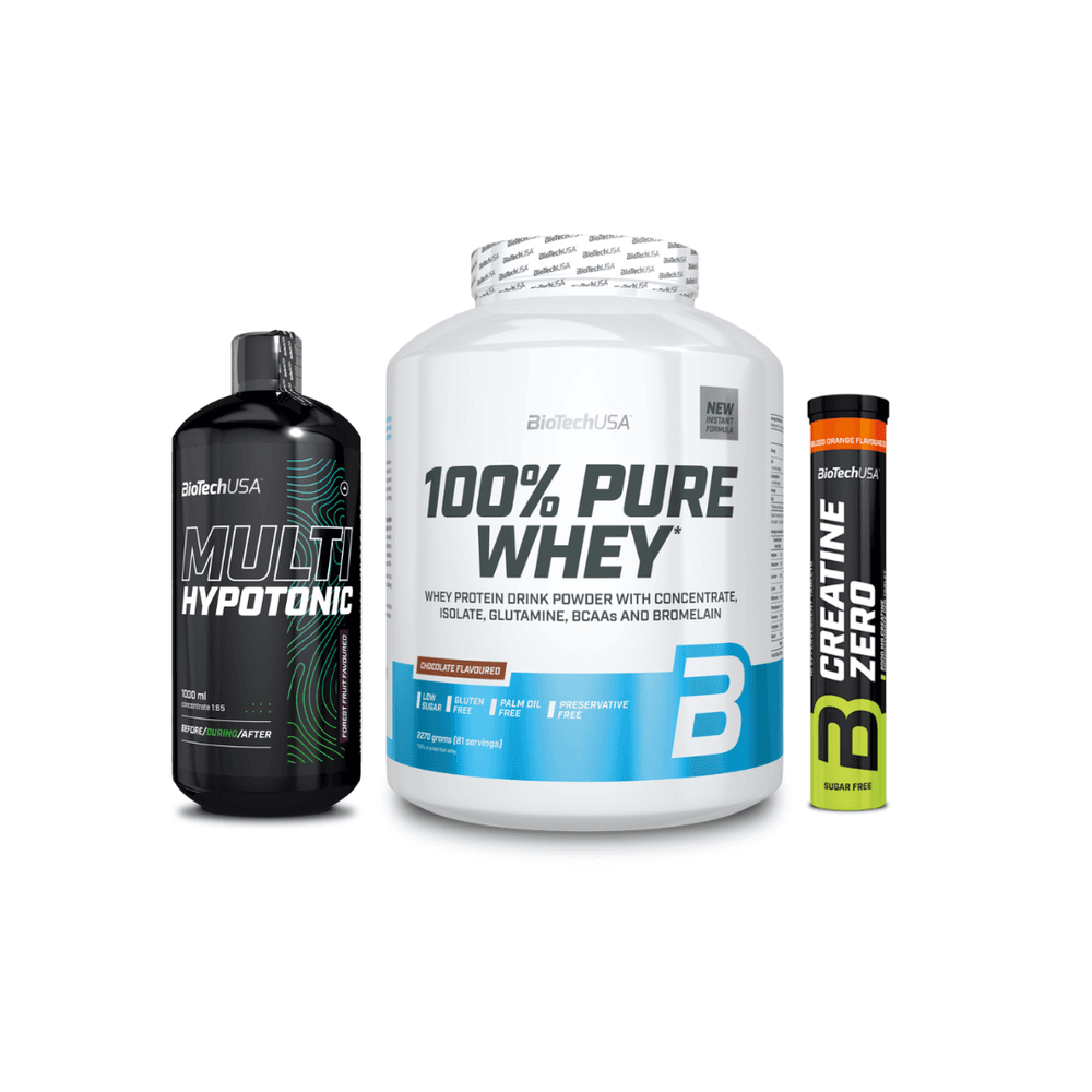 Starter Fitness Pack (Biotech USA 100% Pure Whey Chocolate 2.27kg, Multi Hypotonic Drink 1000ml, Creatine Zero Πορτοκάλι 18 Αναβράζοντα)