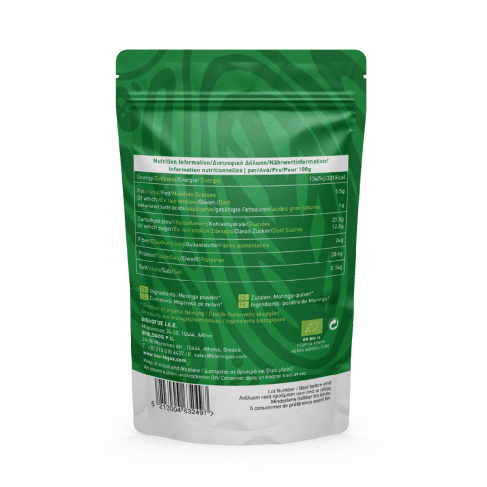Η μορίνγκα σε σκόνη είναι ένα εξαιρετικό superfood γεμάτο θρεπτικά συστατικά, που υποστηρίζουν τη συνολική υγεία και ευεξία. Γνωστή για τις θεραπευτικές της ιδιότητες, η μορίνγκα περιέχει υψηλές συγκεντρώσεις βιταμινών (όπως A, C, και E), μετάλλων (όπως ασβέστιο, σίδηρος και μαγνήσιο), φυτικές πρωτεΐνες και αντιοξειδωτικά. Η μορίνγκα ενισχύει το ανοσοποιητικό σύστημα, βοηθά στη ρύθμιση της χοληστερόλης και του σακχάρου στο αίμα, ενώ υποστηρίζει την ενέργεια, την πέψη και την υγεία του δέρματος. Με τις ισχυρές αποτοξινωτικές και αντιφλεγμονώδεις ιδιότητές της, είναι ιδανική για όσους θέλουν να υποστηρίξουν τον οργανισμό τους φυσικά. Η σκόνη μορίνγκα μπορεί να προστεθεί σε smoothies, χυμούς, σαλάτες, σούπες ή άλλες συνταγές, προσφέροντας μία πλούσια, φυτική ενίσχυση στην καθημερινή σας διατροφή.